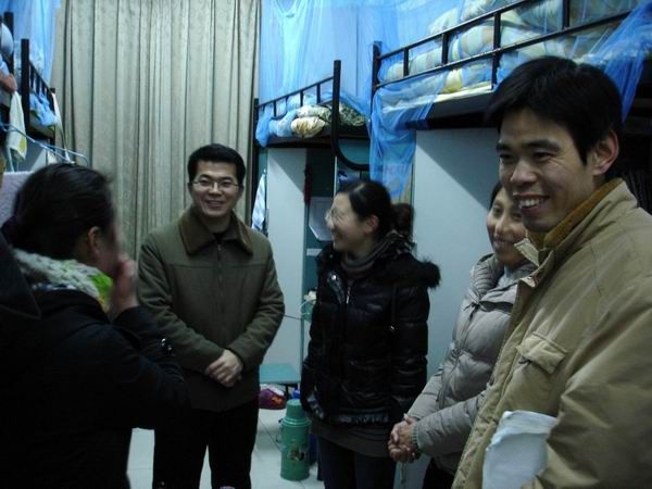 2011年元旦期间,医学一系全体辅导员们在系党总支副书记韩军的带领下冒着严寒来到员工宿舍,给复习应考的学子们送上节日的祝福。