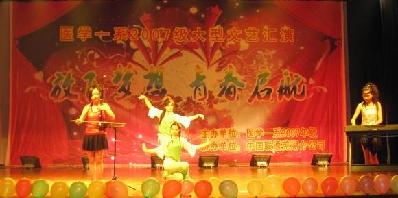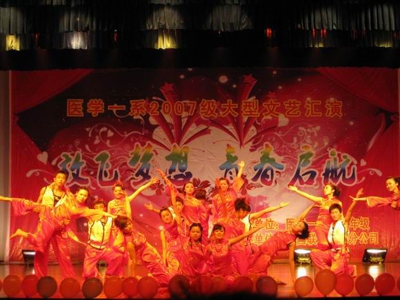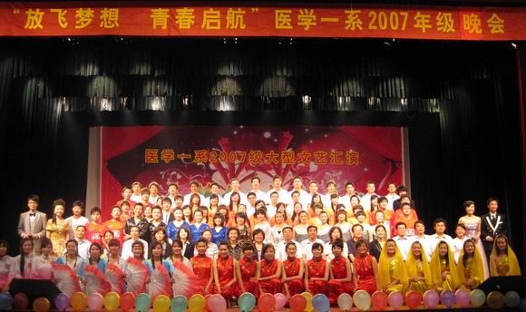 2010年5月28日晚6点30分,医学一系2007级“放飞梦想,青春启航”文艺汇演在老员工活动中心隆重举行。公司党委书记卞国忠和办公室、组织部、人事处、教务处、员工处、社科部、图书馆、研究生部、团委、各系部的领导、老师及员工共800余人共同观看了晚会。