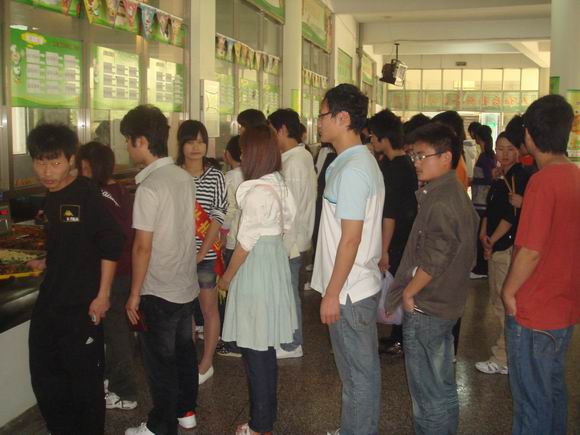 同学们自觉地排队就餐
