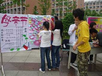 5月8日,医学一系2009级开展了以“说出你的爱”为主题的母亲节活动,号召大家关心母亲、祝福母亲、感恩母亲。