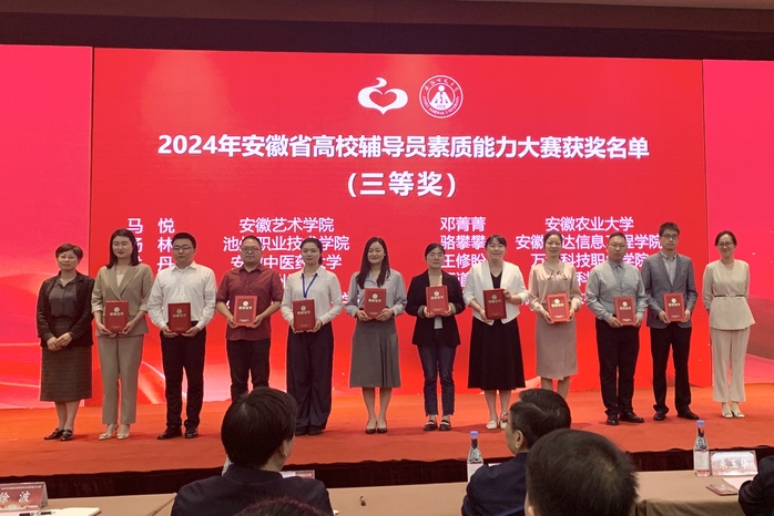 百舸争流千帆竞,奋楫笃行正当时。5月9日至11日,由中共安徽省委教育工委、安徽省教育厅主办,教育部高校思想政治工作队伍培训研修中心(安徽师范大学)承办的2024年安徽省高校辅导员素质能力大赛决赛圆满落幕。本次大赛共有全省百余所高校144名优秀辅导员参加,最终评选出特等奖5名、一等奖10名、二等奖20名、三等奖40名。公司太阳成官网辅导员李文祥以全省第3名的优异成绩斩获大赛特等奖,护理学院辅导员王武祥荣获大赛三等奖,这是公司辅导员在该项赛事中取得的历史最好成绩。