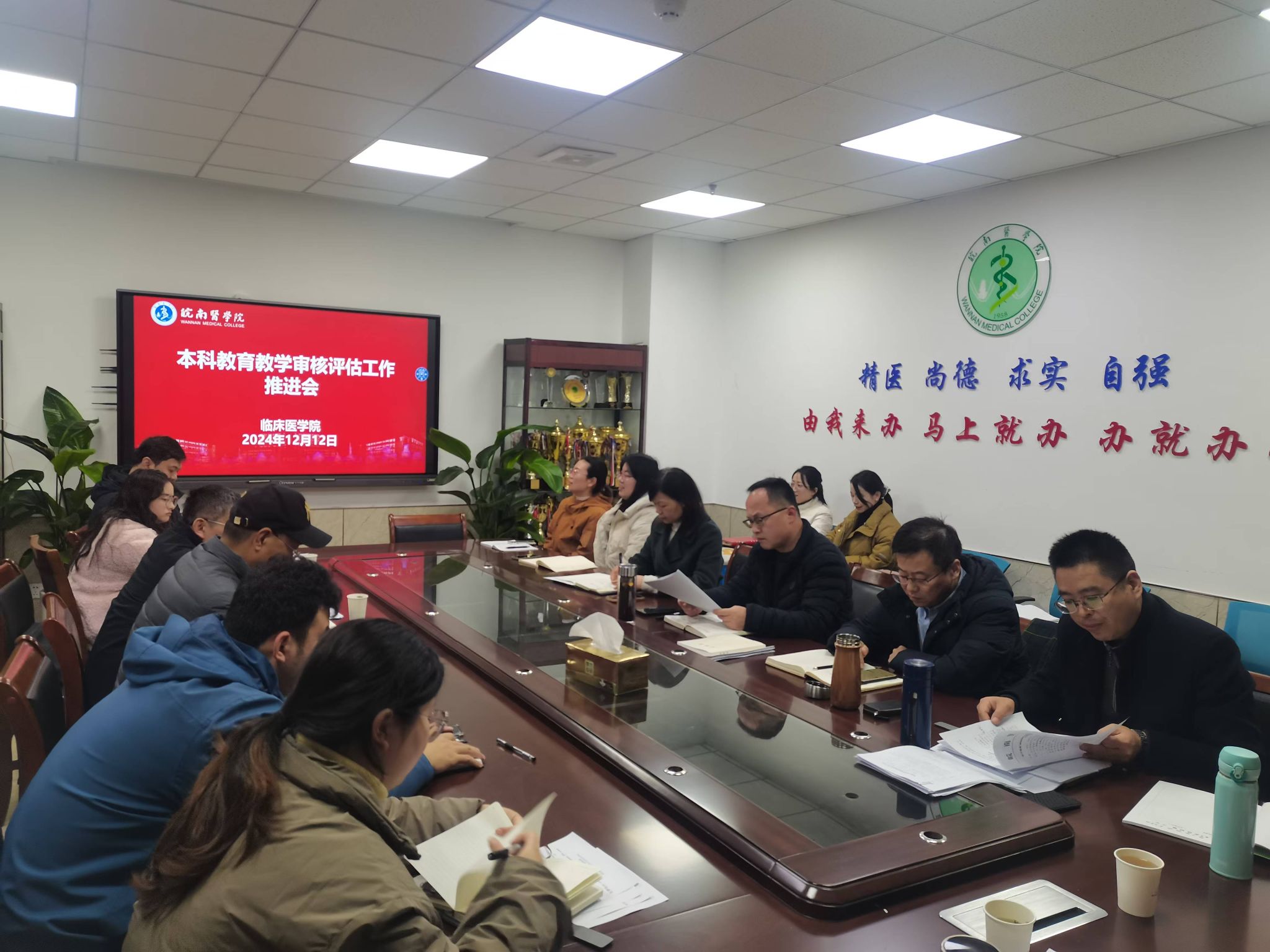 陈祥攀首先汇报了学院前期关于审核评估准备工作开展情况,同时对学校《关于发布2024/2025-1学期本科公司产品审核评估工作任务的通知》内容进行解读,重点介绍了二级学院培养方案、课程教学大纲、课程材料、试卷材料、实验室档案材料、实习(见习)材料等教学档案的整理和自查,并从学院、教研室、实验实训中心、教学医院、实习医院等各个维度进行任务分解和布置。许力强调,审核评估工作要做到人人有责、人人担责、人人尽责,务必真抓实干,保质保量完成任务。方基勇总结时指出,审核评估工作是对人才培养和公司产品质量的一次全方位检验,全院师生要从思想上认识到评估工作的重要性和必要性;要统一思想、凝聚共识,扎实推进、全员参与、全线协作。