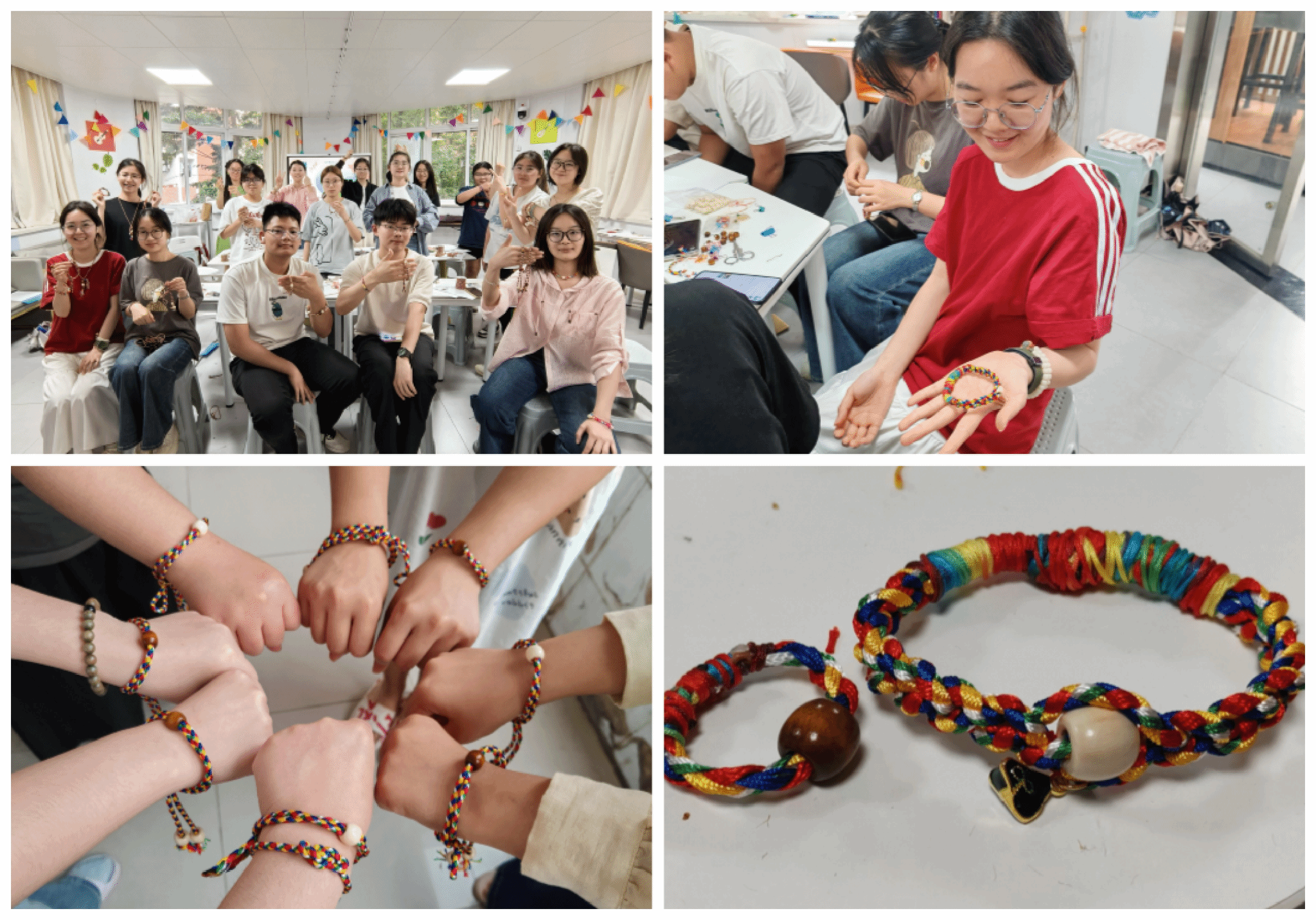 5月29日,社区开展了“彩绳寄安康·巧手工匠心”端午绳制作手工坊活动。活动中,同学们或两两协作,或独自钻研,将青、白、红、黑、黄五色丝线编织成端午绳,同时发挥创意,在绳结中加入小铃铛、木珠等装饰,制作出独具特色的五彩手环。社区还设置了“最美彩绳”展示区,评选出“巧手小达人”,让传统文化在趣味实践中扎根心田。一缕彩绳,一份传承。从打结到缠绕,从配色到收尾,同学们不仅掌握了传统编织方法,更深刻体会到端午节所承载的家国情怀与人文精神。