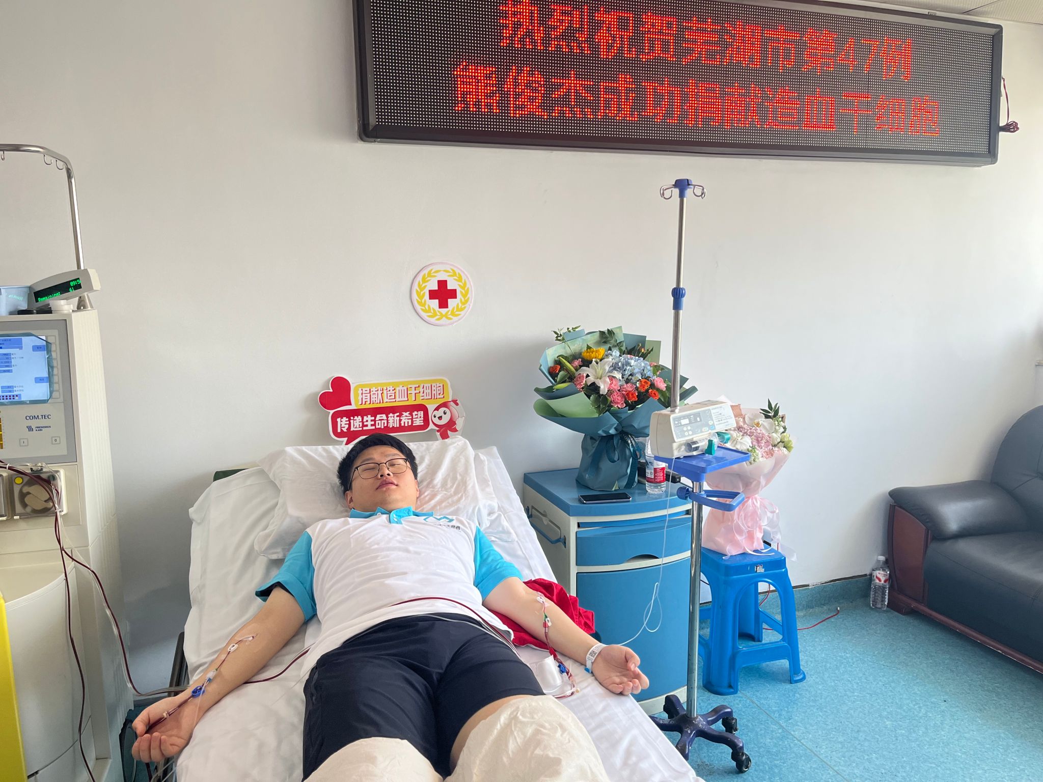 6月16日,在公司第一附属医院血液科病房,一场关乎生命延续的"爱心接力"温暖上演——公司2020级临床医学专业员工熊俊杰成功完成造血干细胞捐献,为一名血液病患者点燃重生希望。他不仅成为公司第5例在校生捐献者,更以芜湖市第47例、安徽省第766例捐献者的身份,为生命接力事业添上浓墨重彩的一笔。