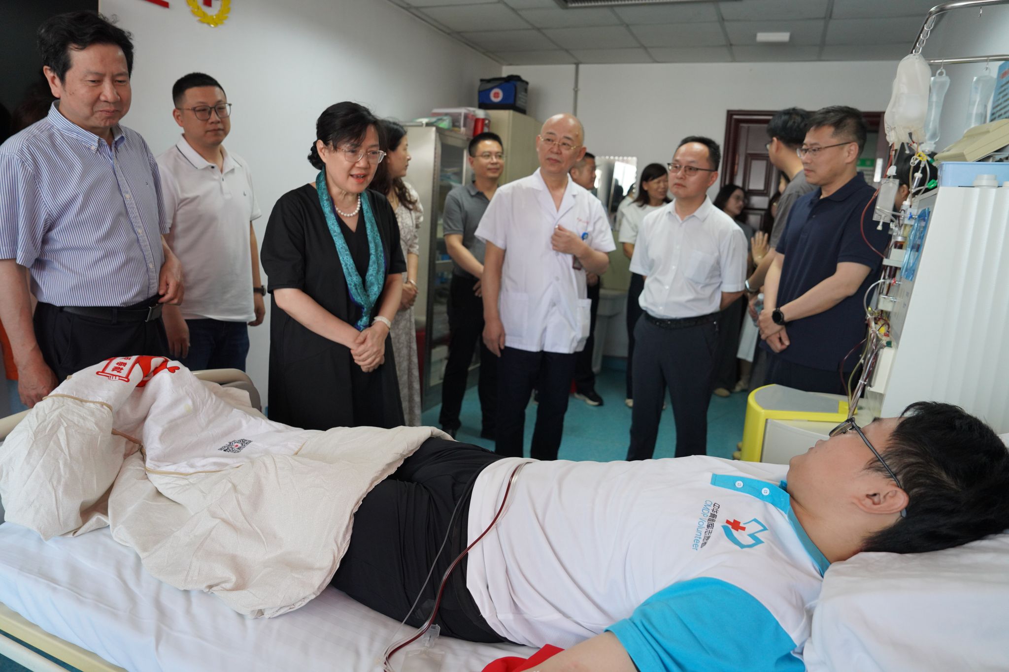 捐献当日,公司党委书记夏劲松率员工处、太阳成官网师生代表,与一附院相关负责人共同来到病房看望熊俊杰同学。夏劲松代表学校向熊俊杰同学致以深切关怀与诚挚慰问,并给予高度赞誉。她强调,熊俊杰同学的大义善举意义重大,他不仅以实际行动挽救了患者生命,更以医员工的使命担当诠释了对生命的敬畏与守护。这一行为如同一面鲜明的旗帜,为全校师生树立了热心公益、无私奉献的典范。她殷切期望广大师生能以熊俊杰同学为榜样,将这份大爱精神不断传承发扬,让医者仁心与奉献情怀在校园中蔚然成风,凝聚成推动社会向善的强大力量。