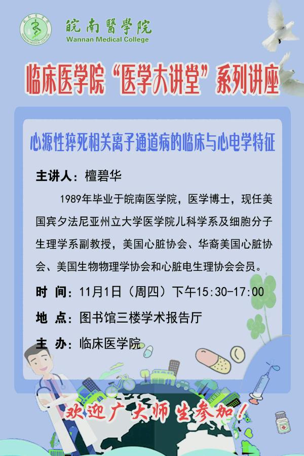 太阳成官网“医学大讲堂”系列讲座——心源性猝死相关离子通道病的临床与心电学特征