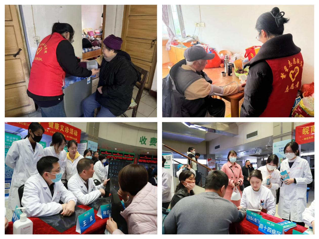奉献正当时,义诊助民生。为进一步提高居民健康保健意识,为社区居民提供贴心、便民的医疗服务,3月份,志愿者们来到滨江社区独居老人家中,为其测量血压,进行健康指导,暖心陪伴老人;在弋矶山医院参与“世界昏迷日”义诊活动,协助专家进行“脑卒中”等疾病的诊疗活动;联合弋矶山医院专家在碧桂园社区开展健康义诊、送医入户、走进敬老院等活动。志愿者们将医学专业知识与社区健康需求相融合,用实际行动传承和践行雷锋精神。