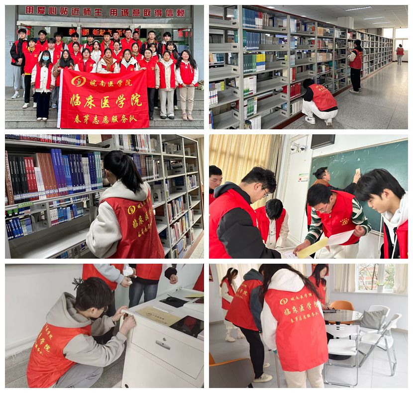 “锋”火传温暖,志愿我先行。3月中旬,春芽志愿服务队开展“清扫一室 学风共创”系列活动。志愿者们分别前往学校图书馆、教学楼、“一站式”员工社区等开展志愿服务,帮助图书馆老师分类整理书籍、修复损坏图书;在讲台侧面安装挂钩,为上课教师提供方便;清扫维护教室和“一站式”员工社区的垃圾等,共同营造良好的学习环境。