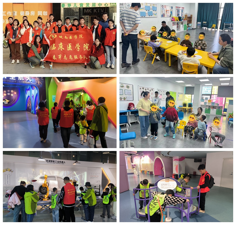 “锋”暖润心扉,关怀显真情。本学期以来,春芽志愿服务队每周定期赴芜湖市特殊儿童发展中心开展辅教活动。志愿者们在课堂上辅助孩子们完成老师下达的指令,帮助中心儿童集中注意力,辅助他们完成老师布置的写汉字等课堂作业,做游戏时保护孩子们的安全。3月15日,志愿者们还陪同孩子们走进芜湖科技馆,带领他们先后体验音乐特斯拉、镜子迷宫、智能机器人等特色展项,帮助孩子们走近科学,体验科学乐趣。