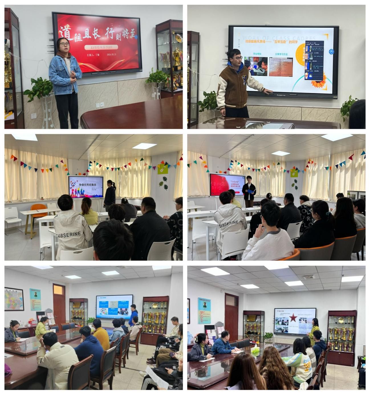 会上,各班代表围绕班级氛围建设、思想价值引领、优良学风建设等方面进行汇报,同时展示了班级同学在学科竞赛、文体活动、志愿服务等方面取得的突出成绩。经过激烈角逐,最终2022级临床2班、临床6班、临床17班、临床18班被评选为2023年度年级“先进班集体”。
