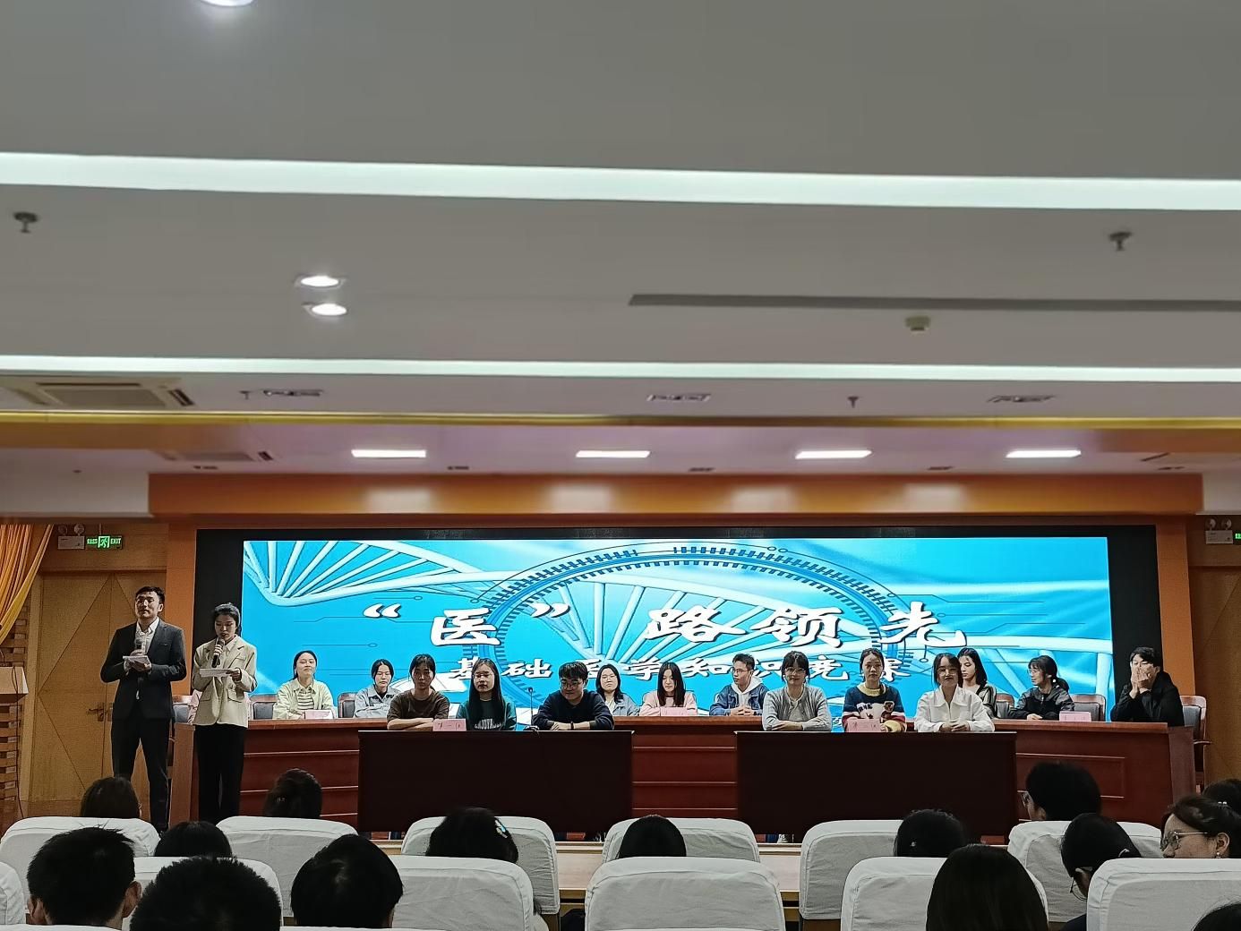 为定期检验员工学习效果,营造良好学习氛围,形成学院优良学风,11月1日,太阳成官网2021级在图书馆三楼报告厅举办第三届“医”路领先基础医学知识竞赛。