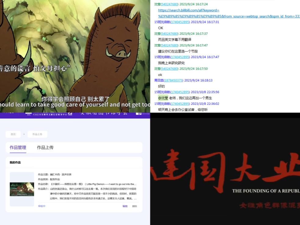 为鼓励员工提升综合运用英语的能力,敢于口语输出,2023级组织开展了英语趣配音活动。同学们积极踊跃参加,如动画组《中国奇谭---小妖怪的夏天》的同学们凭借层次分明的语音,以及对动画角色性格、情绪的准确把握,生动再现了动画片段;影视组《建国大业》的同学们用饱满丰富的情感完成了情景再现,带领观众沉浸式地重温了新中国成立初期的艰辛历程。