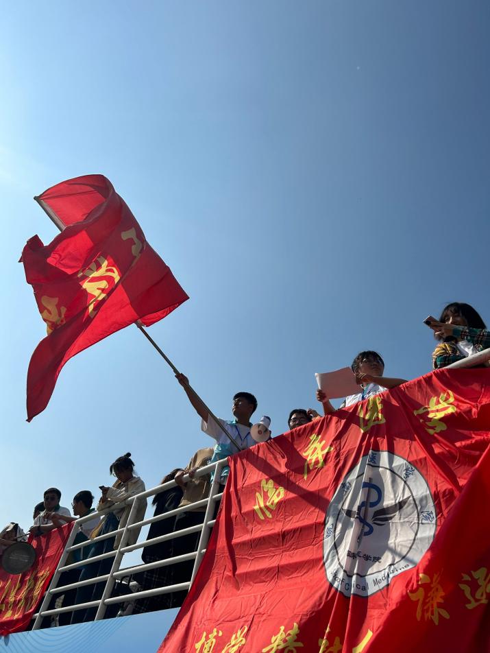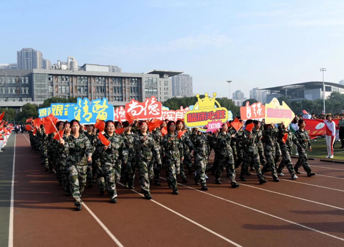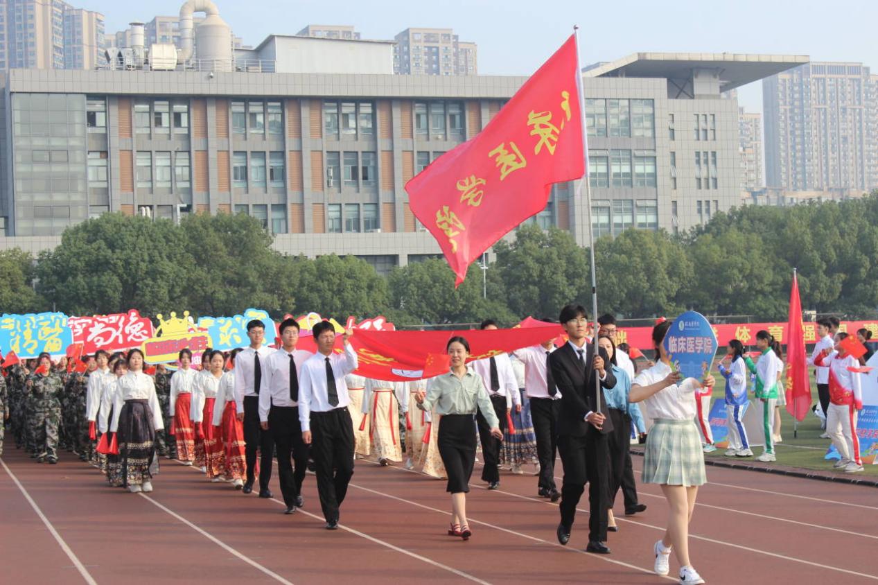 开幕式上,学院方阵队的汉服队队员们身着马面群,挥着手中的折扇,让文化走出历史的画卷;迷彩队队员们穿着迷彩服,挥舞着红旗,让人生有了别样的精彩,一声声“临床临床,拼搏自强,决胜赛场,为梦飞翔”的口号,展现临床学子永不言弃,勇敢追梦的精神品质。