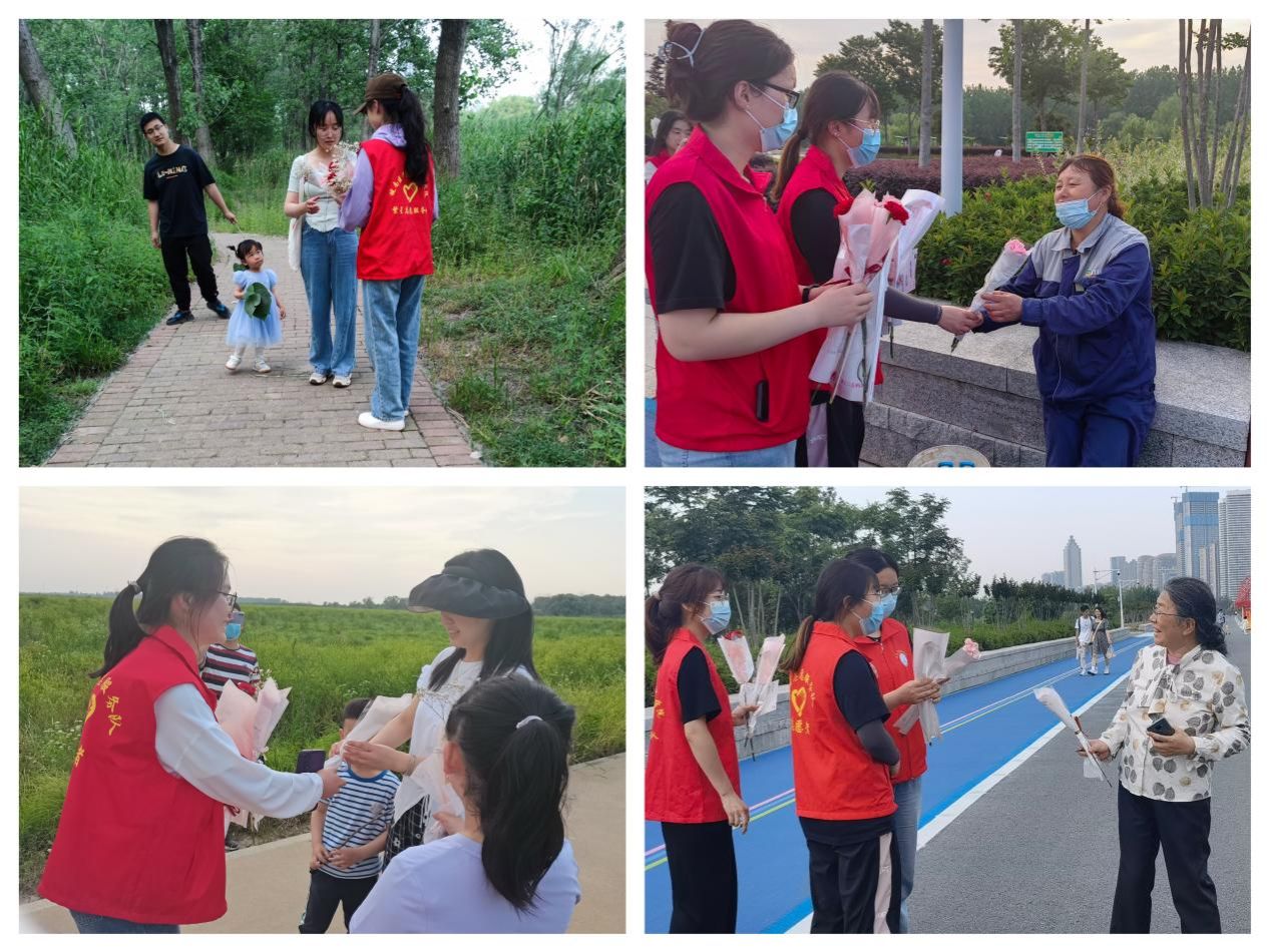 当日下午,志愿者们带着“感恩之心”来到十里江湾公园,用一束鲜花、一张贺卡、一句祝福、一份温情,将对母爱的歌颂传出校外、送入人群。本次活动的举办,营造了感恩母亲、关爱母亲、回报母亲的良好氛围,得到了校内外“母亲们”的一致认可。