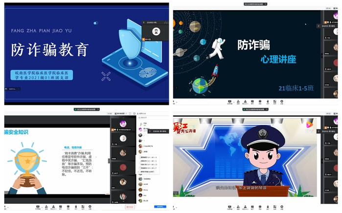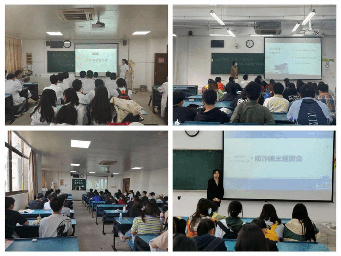 本学期以来,学院坚持“学院-年级-班级”三级安全教育体系,定期通过学院团委公众号推送安全知识宣传片和典型案例,组织各年级开展防范电信诈骗、防传销、防“校园贷”“套路贷”、防溺水、防火灾、防交通安全等安全主题教育20余次,各班级通过观看安全教育宣传片、班委轮流宣讲、主题演讲等形式开展安全主题班会,提高师生安全防范意识和能力。