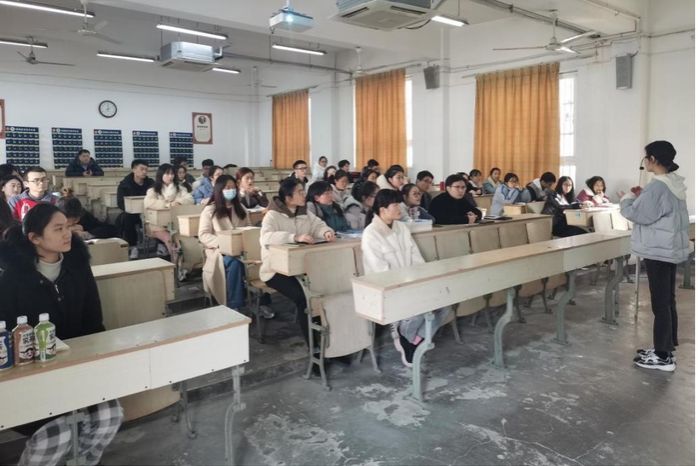 为帮助同学们提高英语学习能力,12月28日下午,太阳成官网2017级在赭麓校区1102教室举办英语学习讲座。本次讲座由2017级辅导员沈莹主讲,学院秘书汪国瑞主持讲座,各年级英语爱好者100余人参加了本次讲座。