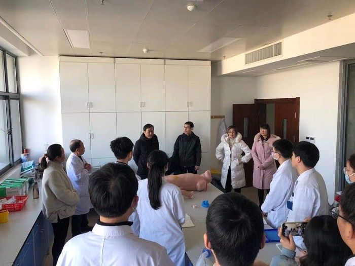 2021年1月8日上午,临床医公司党委书记刘群,副书记、副经理李曙,党委副书记陶香香等一行四人到第一附属医院商讨第九届校级临床技能大赛准备工作,并亲切看望正在备战第十届全国老员工临床技能大赛的师生。