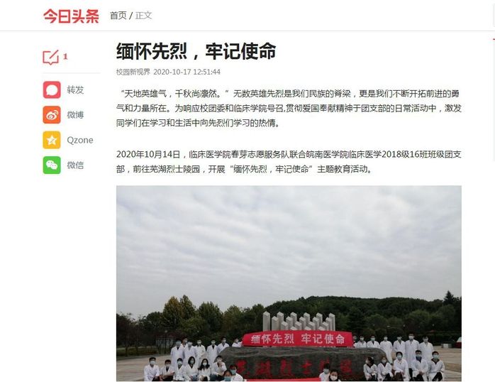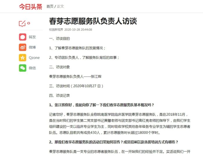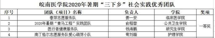 2020年春芽志愿服务队获皖南医学院暑期优秀实践团队一等奖