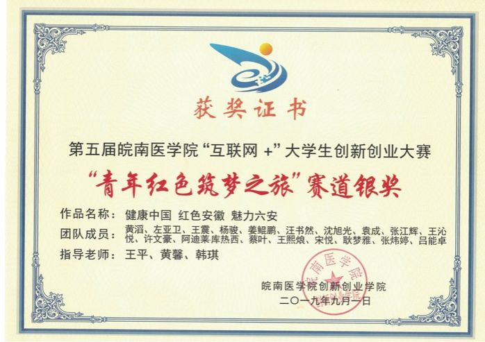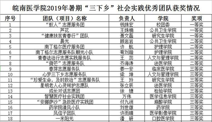 2019年春芽志愿服务队获皖南医学院暑期优秀实践团队三等奖
