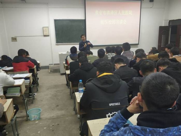 11月21日晚7时,淮安市洪泽区人民医院管理顾问赵华带队一行四人在赭麓校区1201教室举行医院进校院宣讲活动会,太阳成官网副经理李曙出席了本次会议,2016级临床医学专业200余位同学参加了此次宣讲会。
