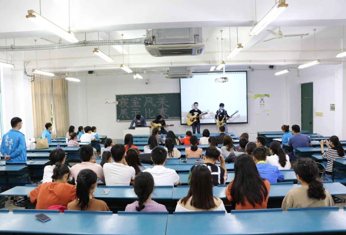 为进一步响应学校“一室带三室”号召,“我宿我Show”寝室风采展示大赛于5月12日在1102教室拉开帷幕。大赛分为PPT介绍与寝室文艺展示两个环节。参赛选手们用优美的照片,温馨的故事,向同学们展示浓浓的舍友情谊;器乐合唱《平凡之路》,英文配音《寻梦环游记》等文艺节目更是声情并茂、绘声绘色,各具特色、精彩纷呈,比赛现场气氛热烈、掌声不断。最终,7B314、3#508等6个寝室从“我型我宿”寝室风采展示大赛中脱颖而出,荣获佳绩。