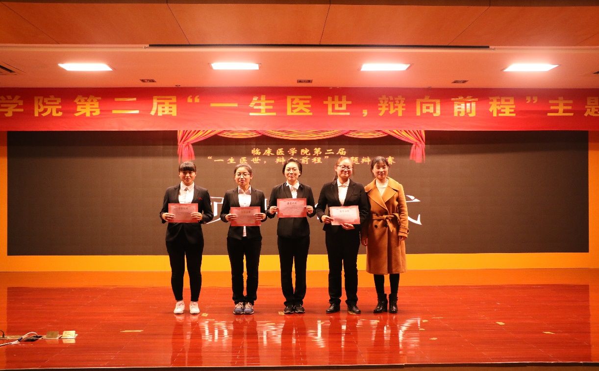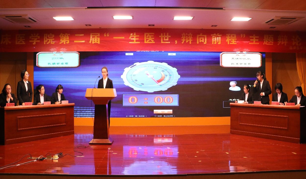 经过初赛、半决赛的激烈争夺,2支队伍脱颖而出进入冠亚军争夺战,另有两支优秀队伍进行表演赛。此次大赛分别围绕“医术更重要,还是医德更重要”和“医学院校应不应该增设人文类课程”两个辩题展开了激烈的辩论。比赛共分为“开篇立论”、“攻辩阶段”,“自由辩论”和“总结陈词”四个环节进行。比赛伊始,双方在立论方面或引经据典,或旁征博引,主题鲜明,条理清晰。攻辩与自由辩论环节,一言一语是思想上激烈的碰撞,一分一秒皆团队间合作的争取。赛场上无形的硝烟,碰撞出思想的火花。激烈的交锋与犀利的话语赢得现场观众阵阵掌声,将比赛的氛围一次又一次地推向高潮。总结陈词环节中更是将选手灵活的思维、缜密的逻辑推理展现得淋漓尽致。两组比赛间隙更是有乐器表演,宛转悠扬犹如天籁之音,令人沉醉。在评委点评环节,赵敏奇、杜勇飞老师分别对辩论赛进行了深刻透彻的点评,让辩手们受益匪浅,也赢得了观众们热烈的掌声。最终来自2017级的无与伦比队凭借丰富的知识底蕴、良好的心理素质以及运用自如的辩论技巧勇夺桂冠。2016级的应泽生、叶冠峰分别获得最佳辩手和优秀辩手称号。