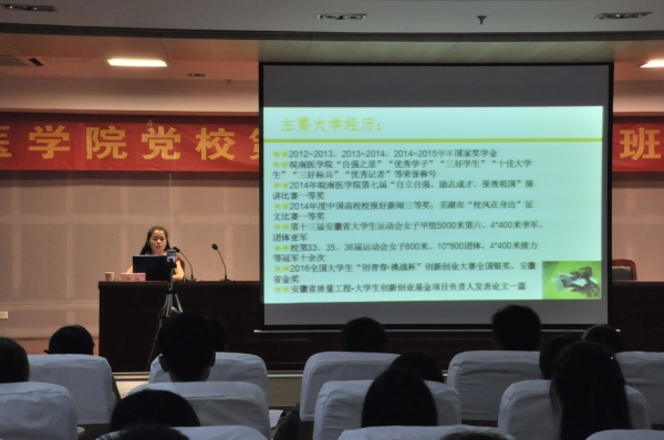 六位优秀毕业生代表从专业选择、报名流程、考研内容、心理调节、面试技巧等方面介绍了各自考研的经历与心得,这对即将步入考研大军的同学们来说具有宝贵的借鉴作用。考取上海交通大学附属第一人民医院血液内科的於芳芳,分享了巧妙化解备考与实习冲突的方法,强调了平衡心态的重要性;考取浙江大学附属第二医院心血管内科的张弛从考研准备入手,分享了一些关于考研初试及复试的技巧方法;考取南京医科大学附属江苏省人民医院普外科的庄茜以“兴趣”一词切入,提醒学弟学妹们要重视临床实习,积极提高自身科研素养,根据兴趣选择专业;考取首都医科大学附属北京复兴医院泌尿外科的郑蒙蒙详细介绍了不同科目的复习方法,建议根据自身实际安排考研时间表;考取蚌埠医学院第一附属医院骨科的苏旭以亲身经历鼓励大家要充满自信,面对新的人生起跑线,每个人都可以通过坚持不懈的努力实现梦想创造奇迹。