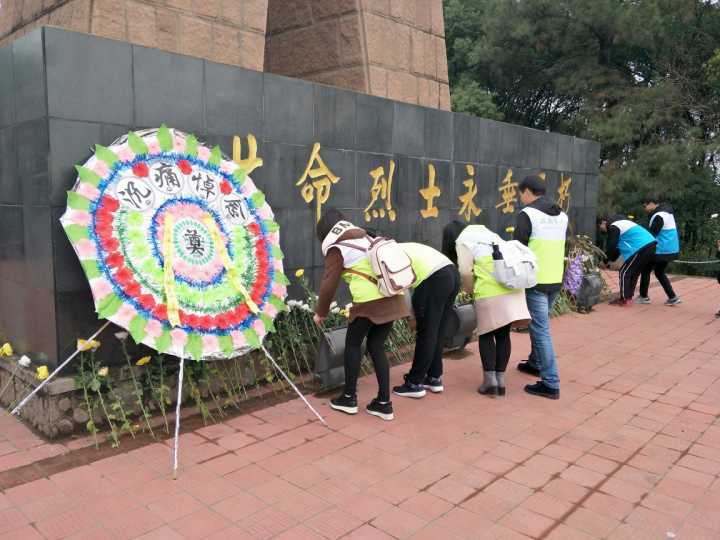 在烈士墓前,同学们献上鲜花,集体默哀一分钟,并庄严宣誓:要“继承革命先烈的意志,发扬艰苦奋斗、戒骄戒躁的优良传统,在逆境中崛起,在忧患中奋进,在平凡中拼搏,做先进文化的传播者,时代精神的弘扬者,人民利益的维护者,社会责任的担当者,为实现中华民族伟大复兴的中国梦奋斗不息!”