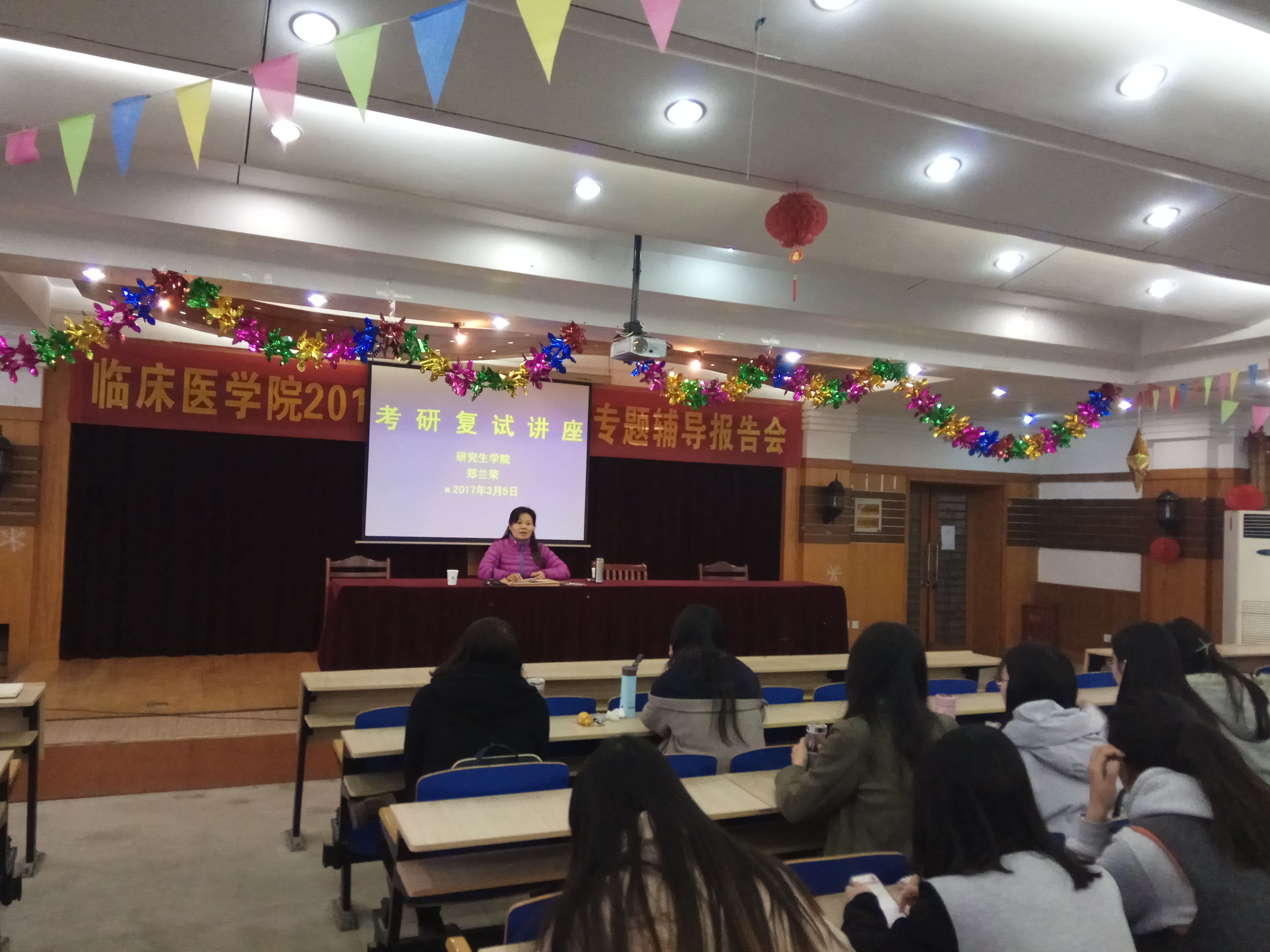 2017年全国硕士研究生招录工作即将进入复试阶段,为使公司2012级参加复试的同学发挥更好水平,帮助未能达到首选院校复试线的同学调剂到更好的学校,3月5日上午8:30,太阳成官网在赭麓校区四号教学实验楼七楼报告厅举办研究生复试专题辅导报告会,特邀公司研究生公司党委副书记、经理郑兰荣教授主讲,为员工指点迷津,200余名考研员工到场聆听。报告会由2012级辅导员汪国瑞主持。