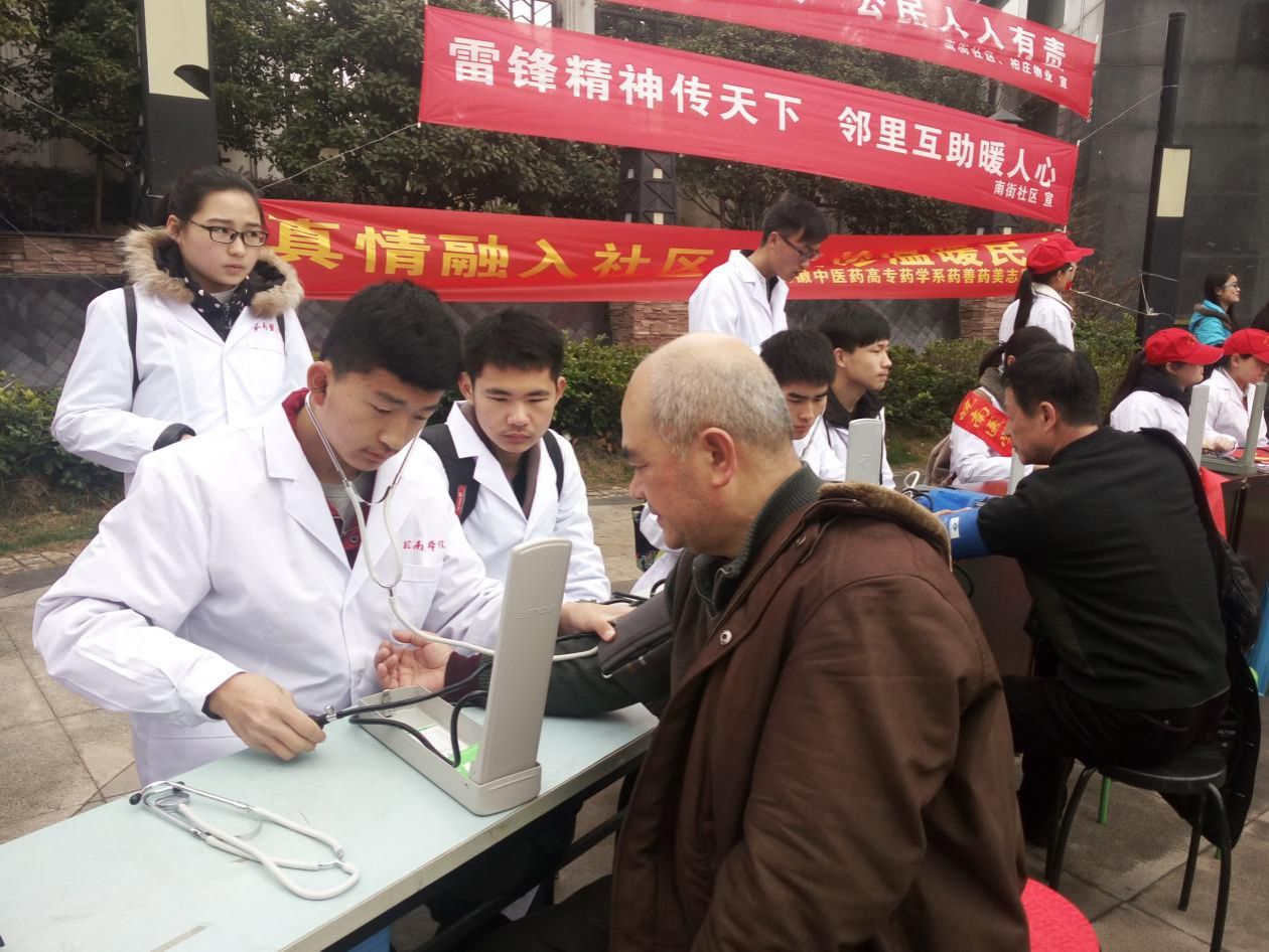 志愿者们走上街头进行交通协管,指导人们安全通过马路,倡导文明交通。他们走进社区进行清扫,或是捡拾垃圾,或是清理小广告,志愿者们不畏辛苦、认真勤奋的态度得到广大居民们的高度认可和赞扬。同时,志愿者们在社区张贴宣传雷锋精神的海报,提高大家为人民服务的热情与意识,呼吁人们传承与弘扬雷锋精神,响应毛泽东同志提出的“向雷锋同志学习”的号召。测量血压现场,前来的社区人员络绎不绝,志愿者们不急不躁,耐心为他们测量血压,并提醒他们注意健康,合理饮食。近日禽流感在多地爆发,为有效宣传现流行的H7N9流感及其他春季流行病防控知识,志愿者们分发传单,积极宣传,指导社区人员做好预防工作。志愿者们贴心地教老人们手部健康操,在亲切的交谈中拉近了与老人的距离,现场留下了一串串欢声笑语。部分志愿者和中医药高专员工一起至居家养老中心为老人们聊天解闷、按摩解乏,为泛着丝丝凉意的三月天带来了一份份温暖。有老奶奶欣喜地说到:“你们的活动很有意义,希望你们能经常举办类似的活动!”