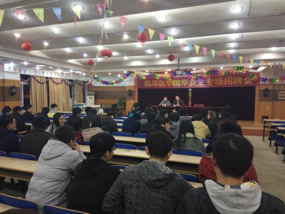 招聘会上,响水县人民医公司党总支副书记杨国宝详细介绍了医院的基本情况、人事招聘制度、人才培养计划和工资待遇等相关问题。同学们就试用期、专业发展、工作生活环境、临床规培等方面纷纷踊跃提问。杨书记对现场同学们提出的问题逐一进行了解答。