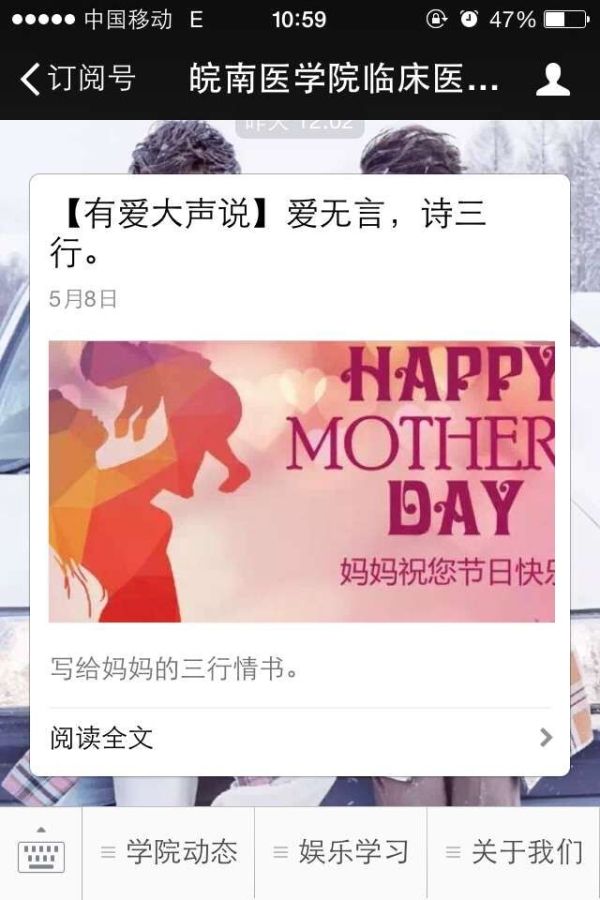 此次活动共收到来自2014级、2015级64位参赛选手的80余首三行诗,每首诗都饱含着作者对母亲的深深感谢和美好祝愿,每个字符都表达了作者对母亲诚挚的爱意。学院团委秉着公平、公正、公开的原则,在众多优秀作品中评出一等奖两名、二等奖四名、三等奖六名,并通过学院官方微信、QQ平台公布获奖名单及作品。