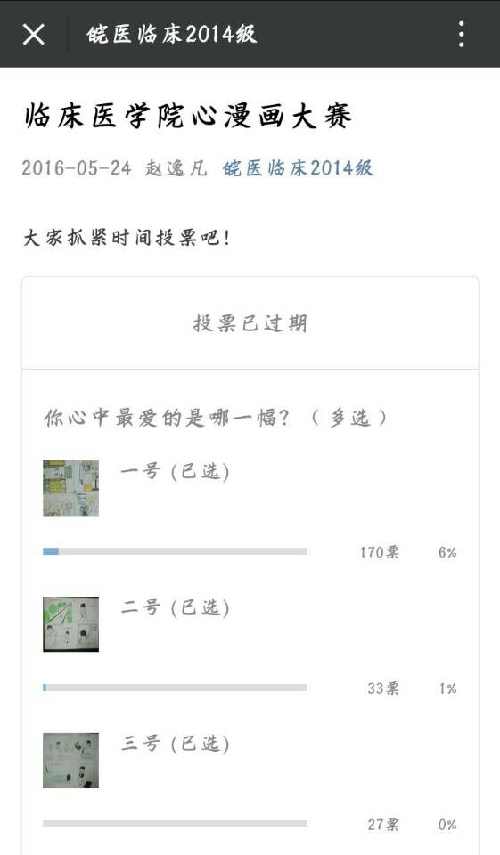 为帮助员工塑造健康心灵,丰富员工课余文化生活,2014级员工会于5月21日——5月26日成功举办“心”漫画比赛。本次比赛共收到来自2014级临床学子的64幅参赛作品。漫画作品多围绕如何营造和谐人际关系、怎样缓解学习压力以及如何应对挫折等不同层面,表达出参赛者的心路心语。经评委审核后,14份作品脱颖而出,入围微信投票决赛。最终比赛共评出一、二、三等奖各2、3、4名,优秀奖12名。其中《蜕变》和《怦然心动》二幅作品凭借别出心裁的设计思路,深厚扎实的绘画功底斩获本次比赛一等奖。