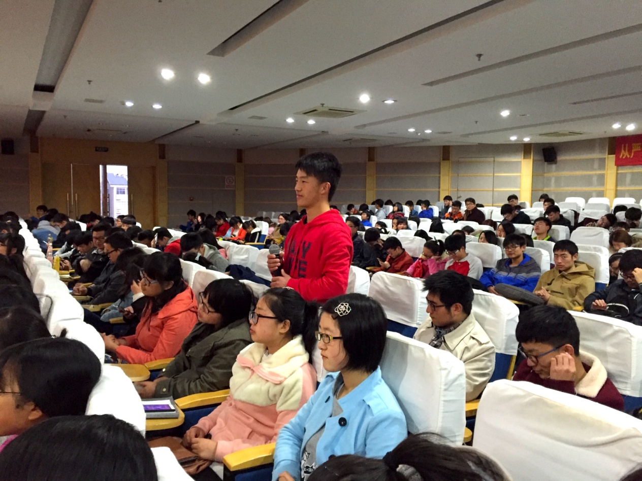 来自不同学院、年级的盛惠、施晓梅等四位优秀学子,分别以“优良学风班”、“学习典型”、”实践典型”和”励志典型”代表的身份,结合自身大学学习生活与班级管理经历,精心制作多媒体宣讲材料,分别从班级学风建设、学习、实践和励志四个方面生动地展示了自己班级建设、勤奋刻苦、开拓创新、努力拼搏的典型事迹。优秀学子在宣讲自身事迹的同时还鼓励台下的员工积极参加各种比赛和活动,培养兴趣爱好,积极参加实践活动,提升本领、提高素养,充实老员工活。在回答疑问环节,台下的观众踊跃提问,宣讲学子也一一给出了解答,活动现场气氛热烈。