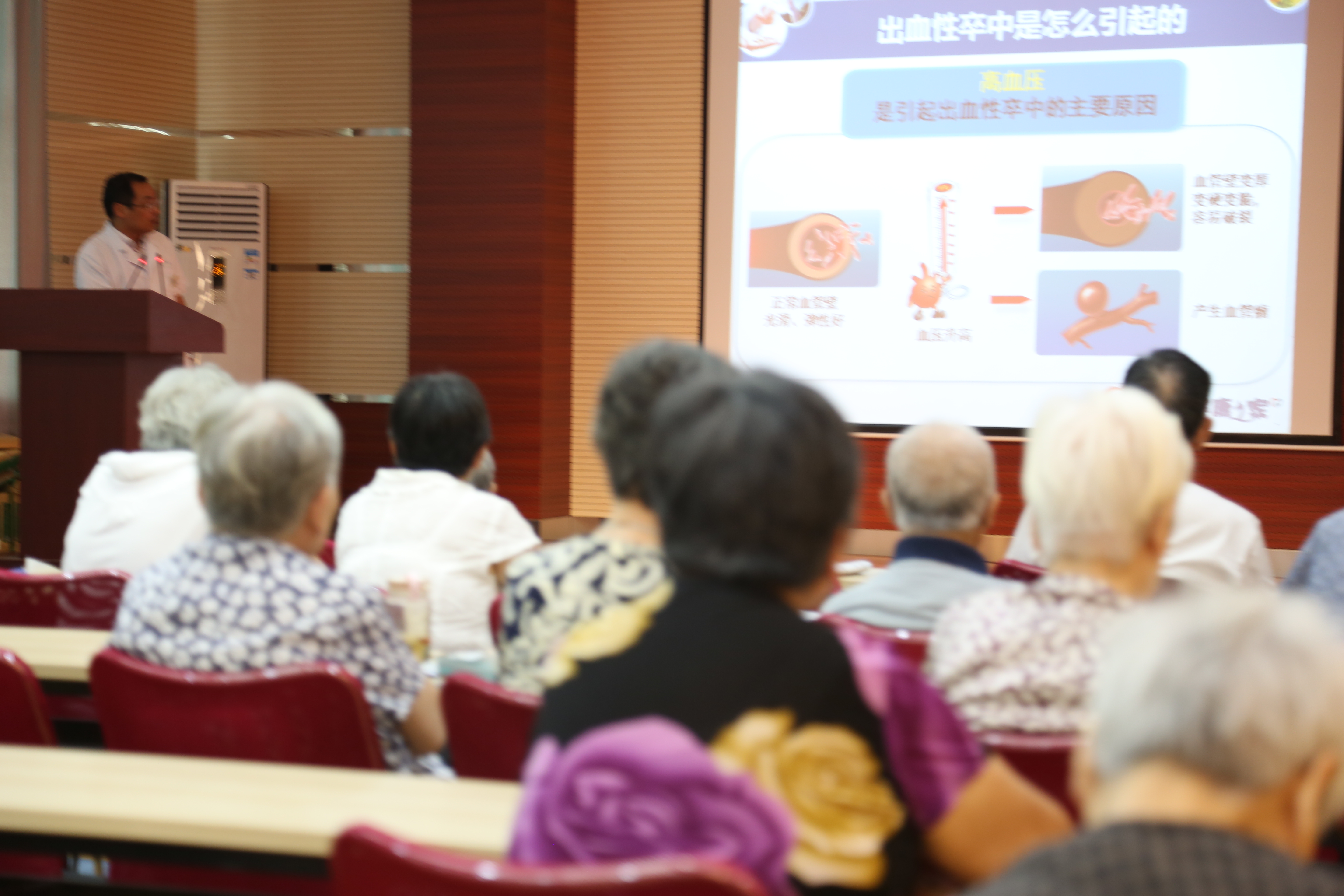 为提高留守老人疾病防治意识,构筑健康和谐老城。志愿者们在大厅内为老人们进行了一些测量血压等常规的身体检查,询问了老人们的身体情况,提出相关的建议。此外,志愿者们还邀请了合肥市第一人民医院普外科涂从银主任和合肥市第二人民医院神经内科吴君仓主任为老人们做了常见疾病防治知识讲座。