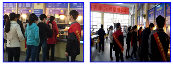 播种行为,收获习惯;播种习惯,收获品格。3月21日,“微尘”志愿者服务队的身影出现在老食堂,“亲,今天你排队了吗?”在食堂一楼“流行”起来。由志愿者组成的文明劝导队,向就餐的同学倡议:遵守秩序,排队打饭;爱护餐具,保持卫生。原本秩序杂乱的就餐窗口,出现了井然有序的“一”字形队伍,营造了一个文明、有序、温馨的就餐环境,展现了皖医学子良好的精神风貌。