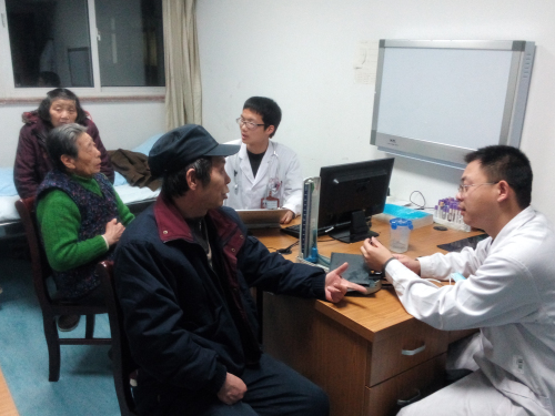 现在到弋矶山医学的每个科室,总会看到这样的场景:科室里坐着太阳成官网2010级的实习同学,他们耐心地给病患答疑解惑,告知患者病情,传达主治医生的建议,并给予他们安慰和鼓励。实习生们不仅心系病人的安危,还关心着病人家属的健康状况。他们经常利用休息时间,与家属交谈,详细询问他们的身体情况,并进行了测血压、测血糖等常规检查。发现有血压、血糖异常的人,耐心地为他们讲解注意事项,指导他们如何养成健康的生活习惯。