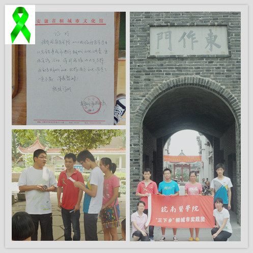 安庆桐城市文化调查与宣传 7月1日-7月3日,服务队的队员们走访了桐城市的文庙等著名景点,与百年名校桐城中学的语文老师交流了桐城文化的相关知识,并在市民广场以问卷的形式调查了桐城市民对本土文化的认知程度。根据调查结果,队员们有针对性地对80后、90后市民进行了桐城文化宣传。本次活动得到了桐城市文化局的肯定与赞扬。