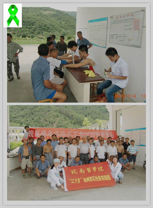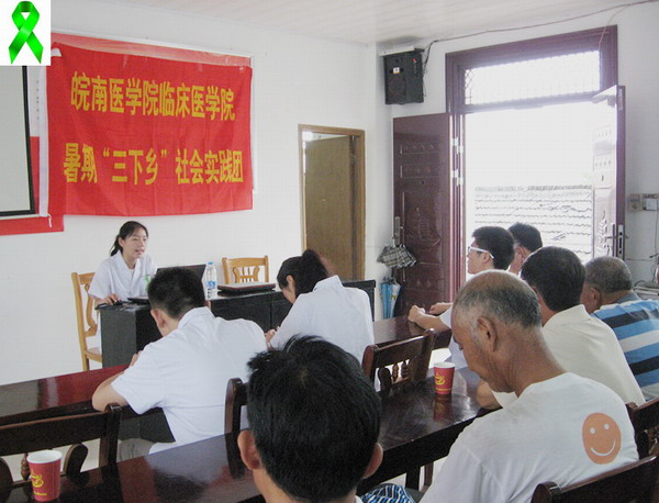 石台县仁里镇敬老院防暑保健知识宣传 7月4日,服务队来到位于池州市石台县的仁里镇敬老院,开展了以“承爱老传统,塑良好医风”为主题的爱心志愿活动,为敬老院的55名老人发放防暑药品和水果,测量血压、脉搏等数据,并根据测量结果对老人们提出了相关的保健养生建议。同学们陪老人聊天、下棋,替老人打扫房间、做饭,用爱心为老人们驱走了夏日的烦闷,也送去了欢乐与祝福。