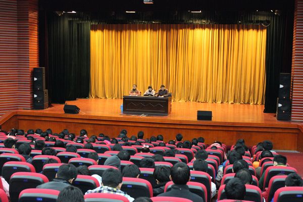 | 临近期末,12月6日晚,医学一系2012级在老员工活动中心礼堂召开年级大会,进行学期总结及诚信考试教育。年级三位辅导员及全体同学参加了本次会议。会议由年级主任张琪琪老师主持。