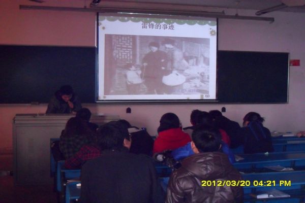 三、学习雷锋事迹,塑造美好心灵。医学一系2009级第3团支部和第20团支部开展了“学习雷锋事迹,塑造美好心灵”的主题班会。主题班会主要以演讲的形式进行,选手们深情歌颂了雷锋精神,表达了对雷锋同志的无穷敬意,并用多媒体展示着雷锋同志服务人民的图片,大大感染了在座的第一位同学。