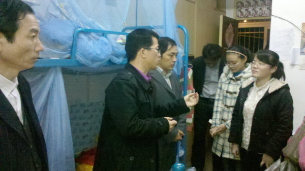 为深入贯彻落实校发[2011]71号文件精神,为员工营造良好的学习和生活环境,11月8日,医学一系党总支副书记韩军、副主任蒋韶明、副书记王金权和2008级党支部书记韩波、委员束玉洁、韩琪等深入北校区医学一系2008级员工宿舍,开展走访活动。