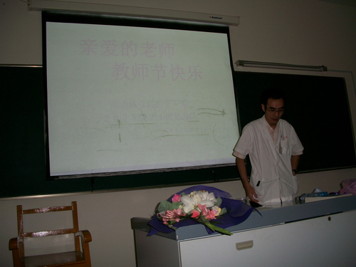 为庆祝第27个教师节,在上海市第五人民医院学习的医学一系2008级同学于9月9日清晨,带着鲜花和祝福来到科教科老师的办公室,向勤恳耕耘的老师们送上最衷心的祝愿和最诚挚的问候。