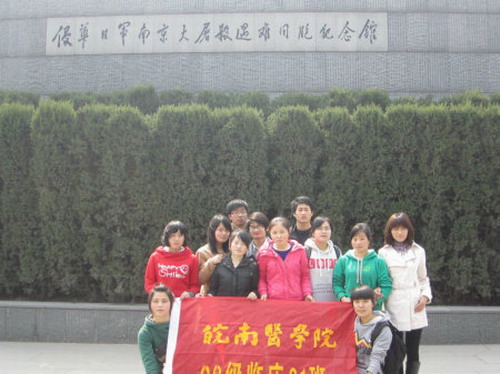 缅怀先烈,弘扬爱国主义精神 为迎接建党90周年,弘扬爱国主义精神,激发同学们爱党爱国的热情,3月 13日医学一系2008级团总支组织员工参观了侵华日军南京大屠杀遇难同胞纪念馆。 上午九点,同学们带着沉重的心情来到了侵华日军南京大屠杀遇难同胞纪念馆。“我们可以放下仇恨,但不能忘记历史!”。我们纪念三十万冤魂,是为了铭记他们的不幸;我们祭奠三十万亡灵,是为了整个人类永久的安宁。通过这次活动,同学们进行了一次爱国主义教育,感受到新世纪老员工的历史使命,同时也为中国的发展复兴而自豪。大家表示要学习好专业文化知识,努力开拓知识面,提高实践能力,为祖国的现代化事业贡献出自己的一份力量。