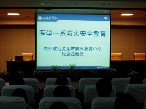 寒冬来临,为提高同学们的防火安全意识,敲响安全警钟。医学一系党总支特邀请芜湖市安居防火教育中心张业茂教官为大家举办防火安全教育专题讲座与培训。12月1日晚6:00,讲座在图书馆三楼报告厅如期举行,讲座由系党总支副书记韩军主持,全系教师和部分员工干部代表参加了学习。