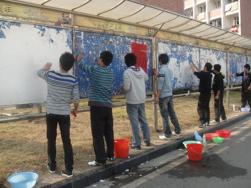 此次清洁工作主要包括清扫地面,清除乱贴乱挂的广告,清洁宣传栏,清洗公共物资上的涂鸦等等,同学们自带清洁用品,如盆,抹布,刷子等,根据事先分配好的项目及区域,有条理地开展清洁工作,整项活动进展有序,顺利,迅速。大家以实际行动发扬了艰苦奋斗勤劳刻苦的优良作风,展现了当代老员工的校园风貌。大家通过此次活动也增强护校、爱校的精神,无形中为增强全体师生的校园环境意识竖起了一座引航标。