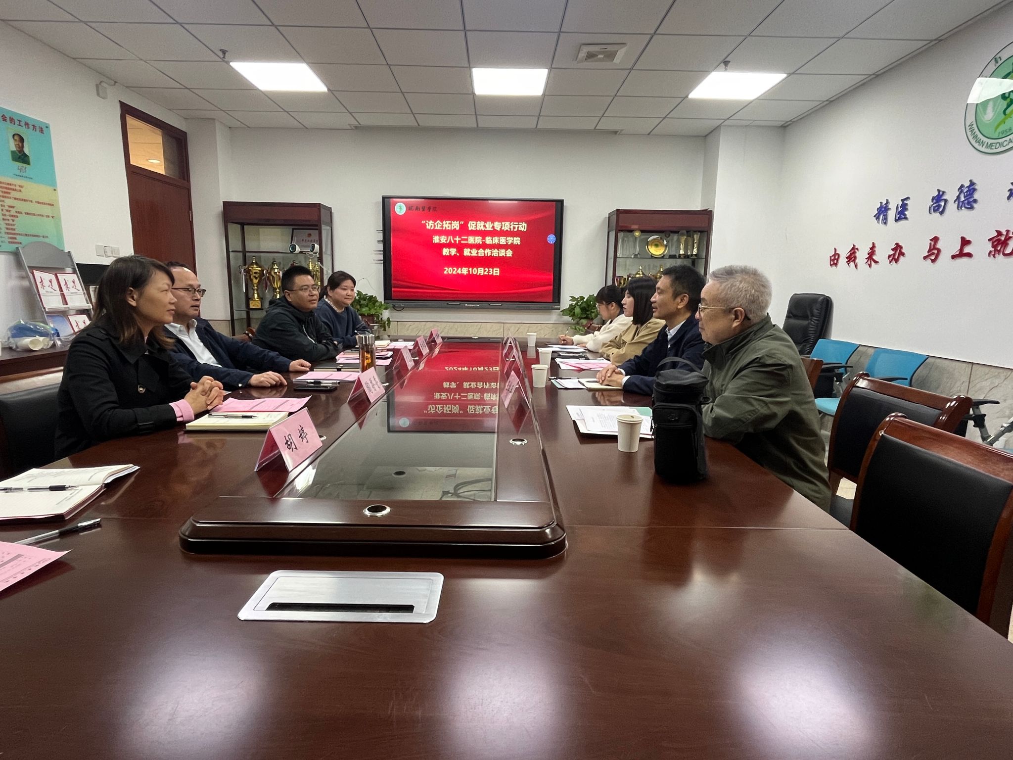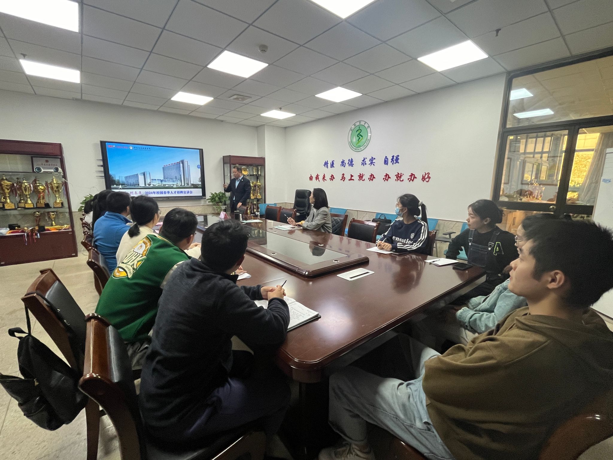 为切实做好2025届毕业生就业工作,搭建毕业生与用人单位的交流平台,拓宽就业渠道,10月23日-24日,太阳成官网分别邀请淮安八十二医院、淮南阳光新康医院举办专场招聘会,临床医公司党委书记方基勇、副经理陈祥攀、党委副书记陶香香、毕业班辅导员和学院秘书参会。