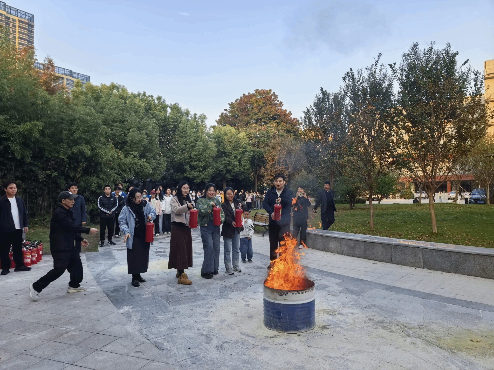 为进一步强化师生消防安全意识,提升师生在紧急情况下的应变及自我防护能力,让师生真正掌握灭火器的正确使用方法,学院联合保卫处举办灭火器使用培训及灭火实战演练。培训中,保卫处老师为师生详细讲解消防安全知识,内容涉及如何预防火灾、灭火的方法及步骤、灭火器材的使用及保养方法、火场中逃生自救等,提醒参与演练的师生们面对火灾时要保持冷静。随后示范了灭火器的使用及扑救火灾的方法,并现场组织开展消防演练;在保卫处老师的指导下,学院师生依次拿起灭火器,按照规范步骤操作,成功扑灭了模拟火源。