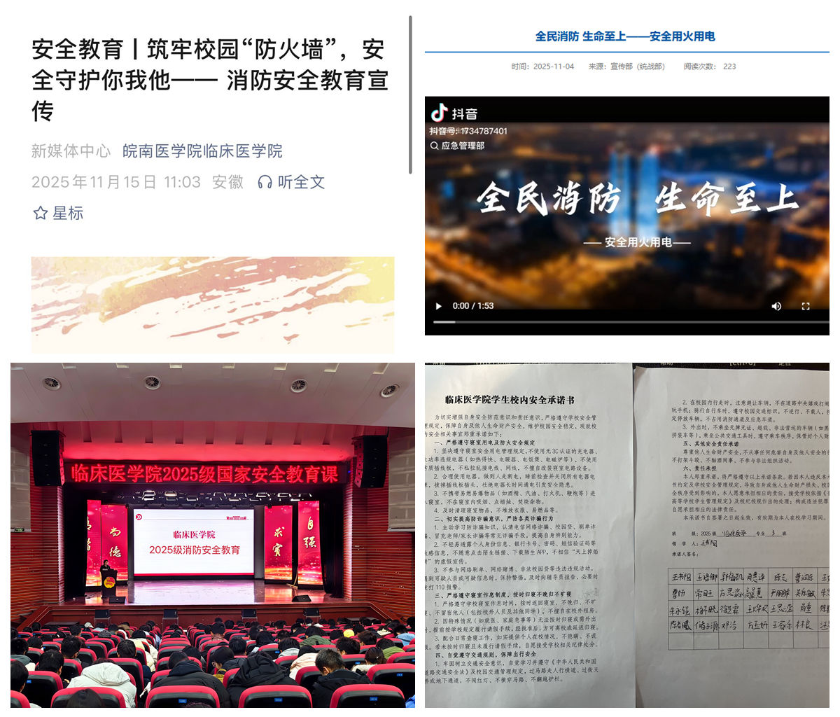 公司充分利用各类宣传阵地,开展消防安全宣传,通过官网、微信公众号等平台推送消防安全知识图文、火灾逃生技巧视频、安全用火用电宣传片,引导师生了解消防、关注消防、参与消防,扩大了宣传覆盖面和影响力;同时,各年级召开消防安全主题班会,签署安全承诺书,会上结合典型火灾案例,深入浅出地剖析火灾成因及危害,引导员工树立“安全第一、预防为主”的理念,切实将消防安全知识内化于心、外化于行。