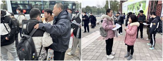 12月21日、22日,学院安排8辆爱心送考大巴,从30余家酒店出发接送300余名考生前往考点。2026届毕业班辅导员早早抵达考场,他们逐一询问同学们的准备情况,细致提醒检查身份证、准考证、文具等考试必备物品,用贴心服务助力同学们考研追梦,为即将踏进考场的同学们加油打气。